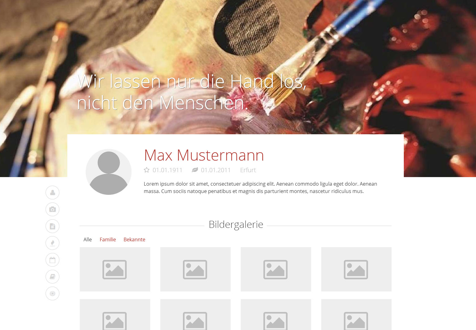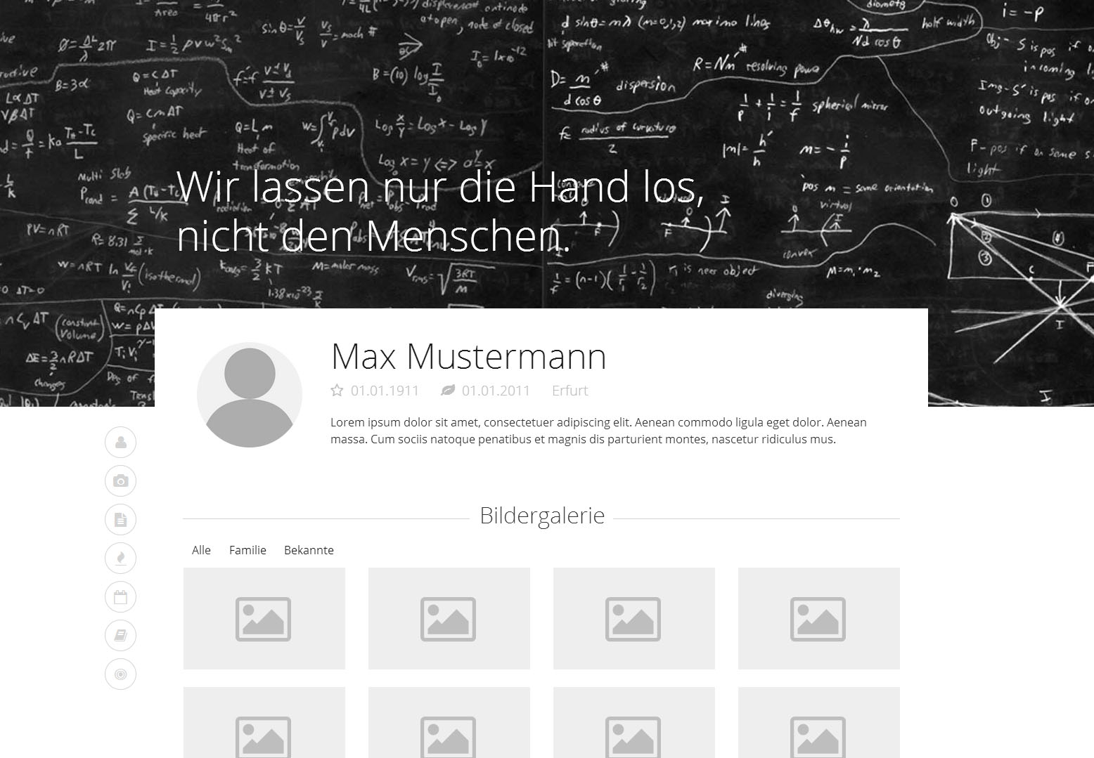 Bitte wählen Sie aus den nachfolgenden Themen eins aus. Über die Filterleiste können Sie die Auswahl auf verschiedene Kategorien einschränken. Im nächsten Schritt können Sie alle Inhalte beliebig verschieben und bearbeiten.